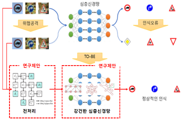 - (2년차) : 심층신경망에 대한 대립 공격을 검출하는 새로운 방어 기법을 제안하고 공격회피 기법 연구